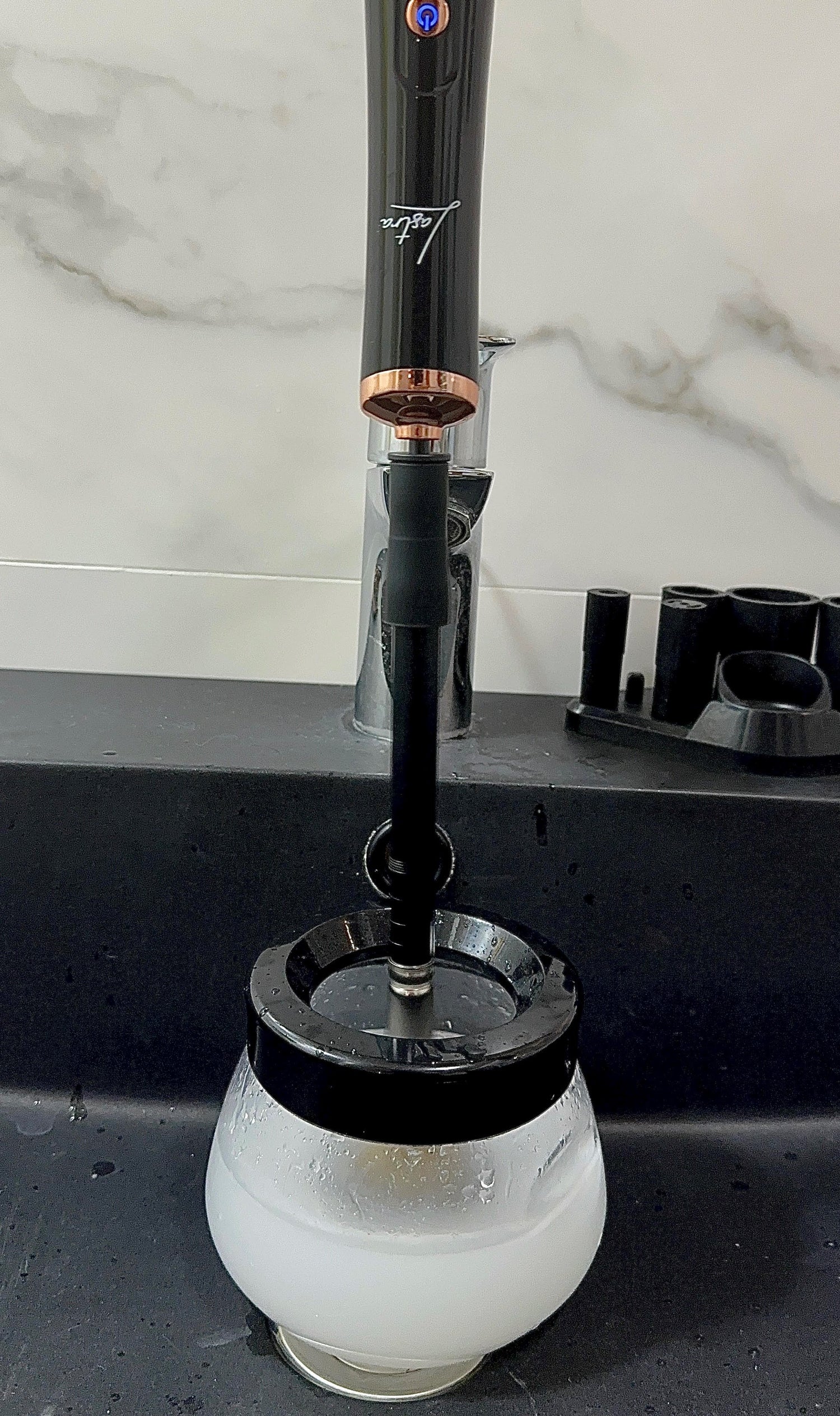 Surprise! Our Automatic Brush Cleaner doesn't just clean your brushes—it dries them too!